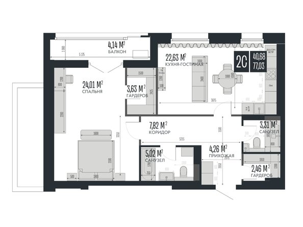 Площадь от 52 м2