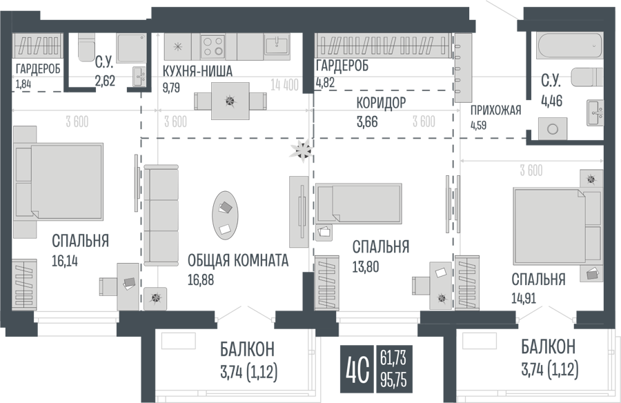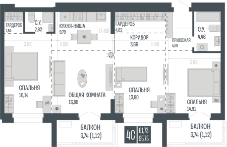 Площадь от 73 м2
