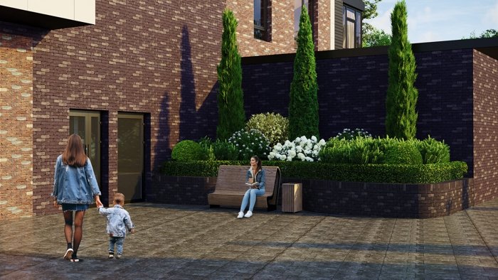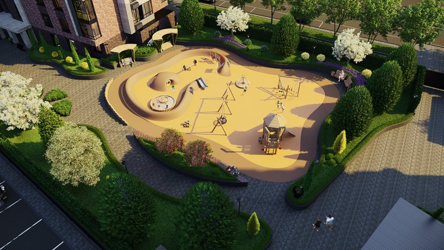 Отсутствие автомобилей во внутреннем дворе делает безопасной прогулки детей и увеличивает полезную площадь жилого комплекса и делает ее многофункциональной — для спорта, развлечений и досуга.