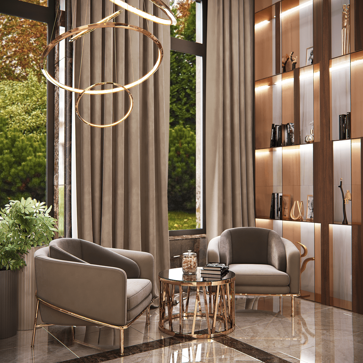 Большие панорамные окна наполнят квартиры естественным светом днем, а вечером из окон будет открываться панорамный вид на реку Обь и исторический центр краевой столицы. Будущие резиденты комплекса будут одновременно проживать в центре города и в окружении собственного зеленого парка. Парк спроектирован с учетом потребностей каждого жителя жилого комплекса. Доминирующая часть двора — это зеленый оазис из крупномерных деревьев и кустарников.