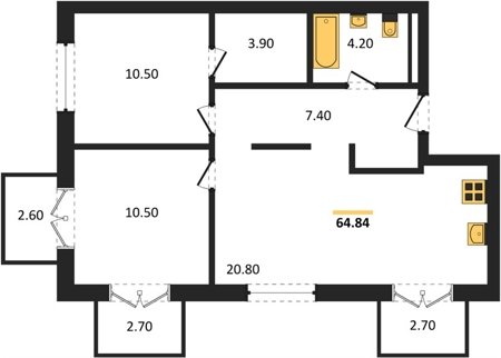 Площадь от 65 м2